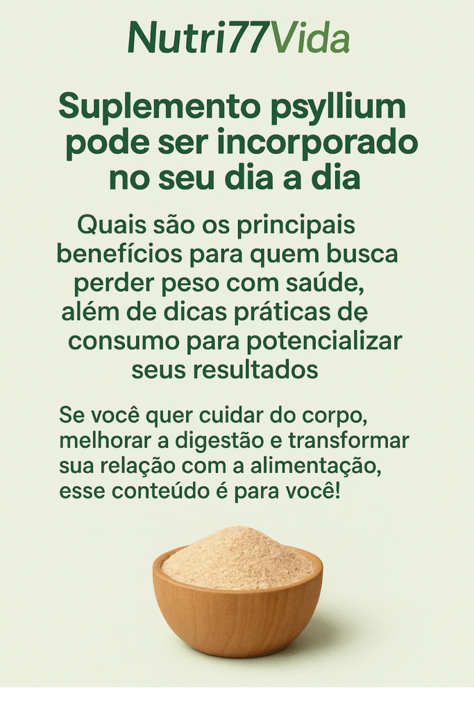 No artigo de hoje da Nutri77Vida, vamos mostrar como o psyllium pode ser incorporado no seu dia a dia, quais são os principais benefícios para quem busca perder peso com saúde, além de dicas práticas de consumo para potencializar seus resultados.
